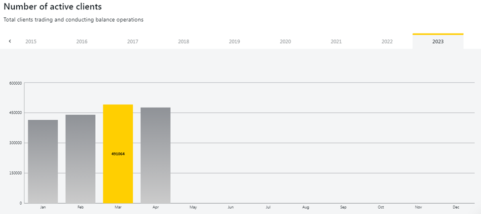 Although April 2023 witnessed a slight decrease, with total clients reaching 476,172, the numbers remained consistently above 450,000 for two consecutive months, reflecting the platform's sustained appeal.