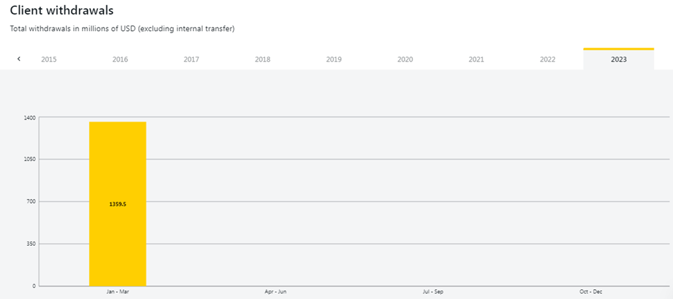 Q1 of 2023, client withdrawals reached a record-breaking figure of $1.35 billion, reflecting a substantial increase of 55.2% compared to the previous year's first-quarter withdrawals of $870 million.