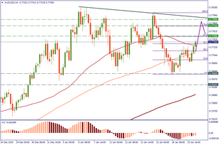 AUD/USD has formed a ‘harami’ on the D1 and a higher low on the H4. The pair will likely go up to test the resistance line that connects January highs. There (around 0.7790) will be a great place to sell: it will be the third time the price touches the resistance and a bearish harmonic pattern. Trad...