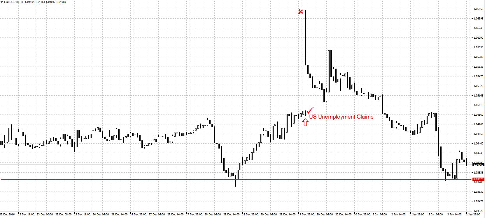 For example, late last year on the 29th of December 2016, the US Department of Labour released the weekly unemployment claims report. The report showed a lot fewer unemployed individuals in the US, which was great for the US economy, and the Forex market responded in kind: