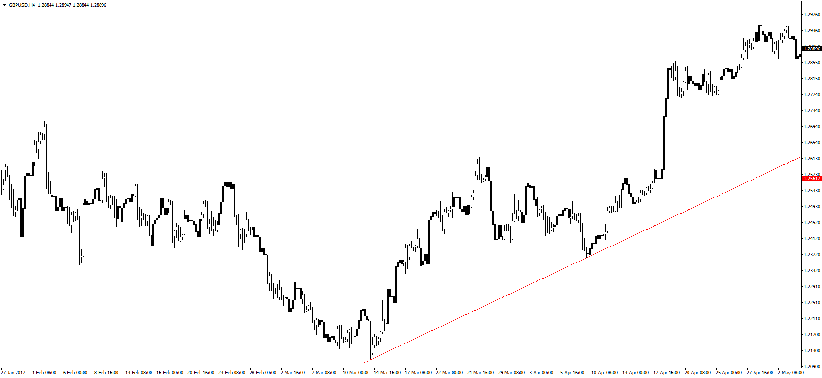As the ascending trendline shows, more and more bulls are getting into the market and shifting market sentiment. The final push at the resistance level should come as the triangle is almost forming an apex. In this case, we see that the bulls finally overpowered the bears and prices shot up above the resistance level.